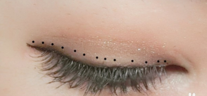 第三步:接着使用上一步骤的眼影盘,自带眼影棒小的那头沾取深色贴近睫毛根部画一条眼线。