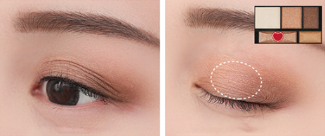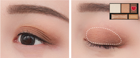 第二步:选择比棕色眼影深一色号的眼影,用眼影棒较大的一头涂抹双眼皮褶皱内,这里使用的是眼影br1.
