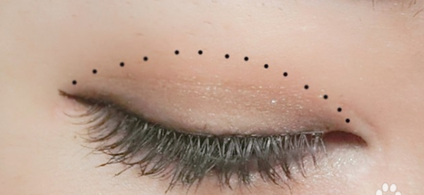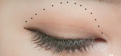 第一步:手指沾取哑光棕色眼影膏,从贴近睫毛根部的眼皮中间开始涂抹整个眼皮,这里使用的是眼影膏.